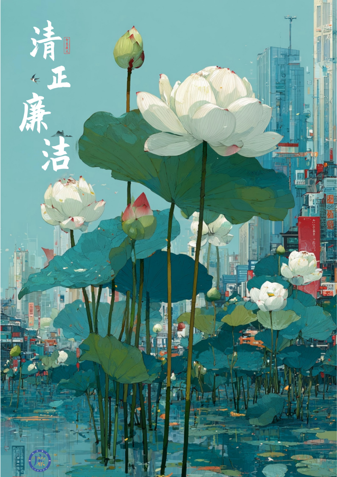 活动发布后,各党支部积极响应、广泛发动,共收到来自不同岗位、不同部门的43幅原创AI海报作品。大家以科技为笔、以清风为墨,将青松、梅兰、清泉、皓月等传统廉洁意象,与未来科技线条、数字美学表达方式巧妙融合,呈现出一幅幅寓意深刻、风格多样、富有时代气息的作品。