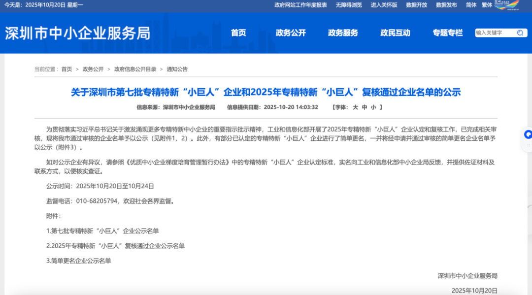 为贯彻落实习近平总书记关于激发涌现更多专精特新中小企业的重要指示批示精神,工业和信息化部开展了2025年专精特新“小巨人”企业认定和复核工作,已完成相关审核,现将我市通过审核的企业名单予以公示(见附件1、2)。此外,有部分已认定的专精特新“小巨人”企业进行了简单更名,一并将经申请并通过审核的简单更名企业名单予以公示(附件3)。